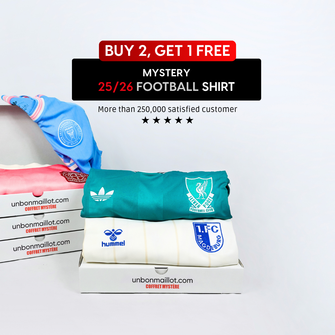 Choose your sport: football, rugby, or basketball. Each box contains an authentic mystery shirt, carefully selected by our team.
